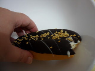Guilty pleasures section: Above, market-stall fried chicken and fishcakes. Left, chocolate eclair (15 baht - that's about 30p - from the market, but you can only get them rarely).